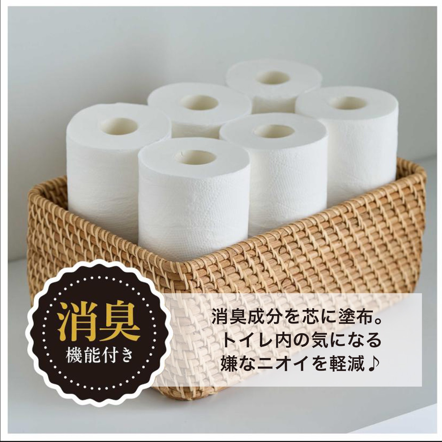 個室トイレの中に収納棚がない、あるいはバックヤードが極端に狭いお店でも安心。1袋(8ロール)で通常品12ロール分の長さ(1.5倍巻き)があるため、少ないストック数でも長持ちします。