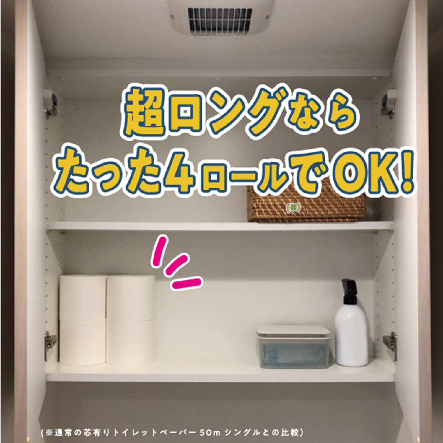 トイレットペーパーの「交換頻度」「収納スペース」「芯ゴミ」に関するお悩みを、この日本製・超ロング5倍巻きトイレットペーパーがまとめて解決します!