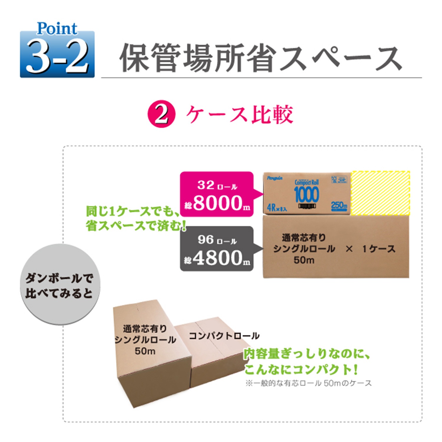 - 一般のご家庭では:頻繁なロール交換がなくなり、忙しい家事の負担を大幅に軽減します。
